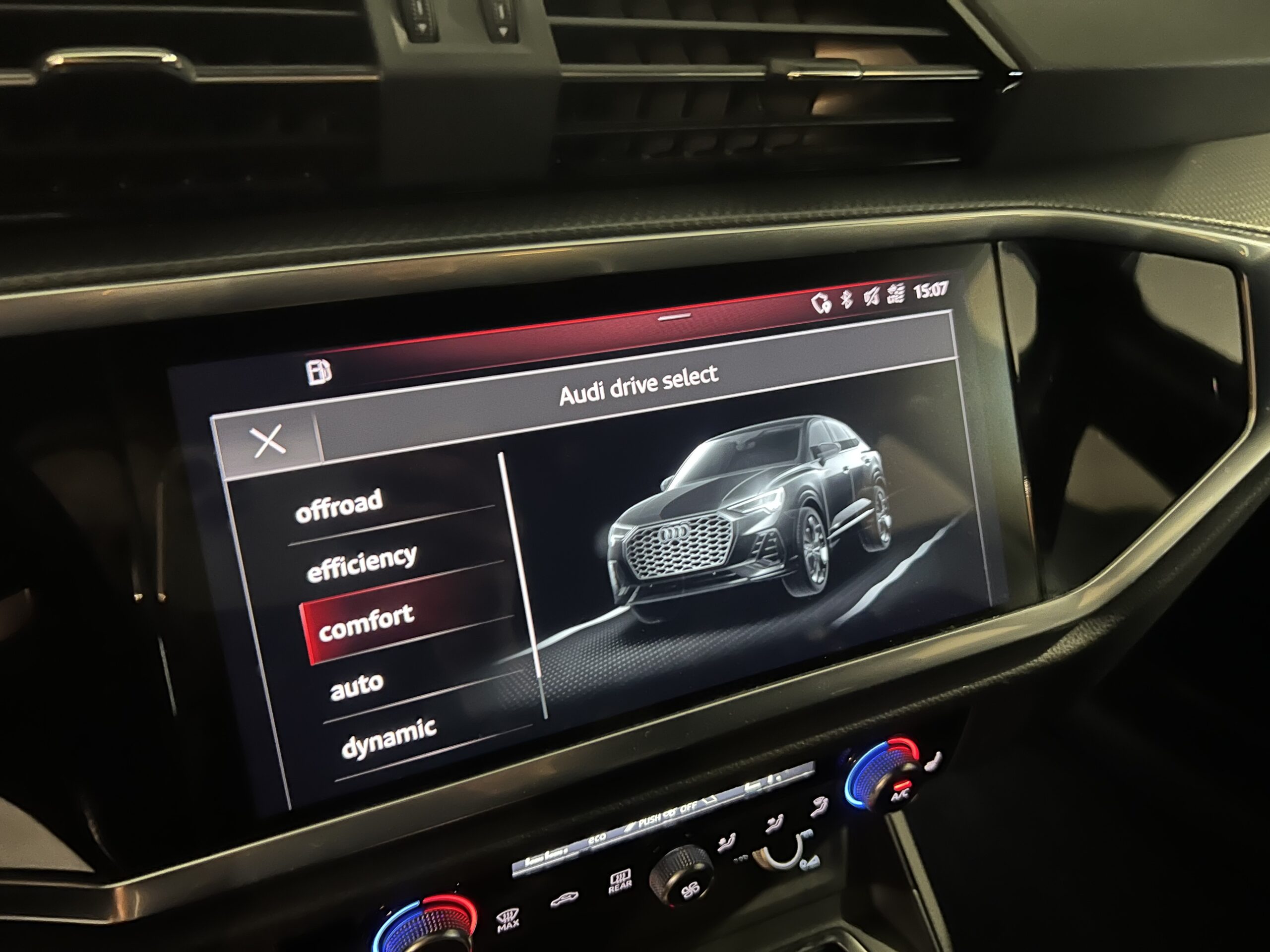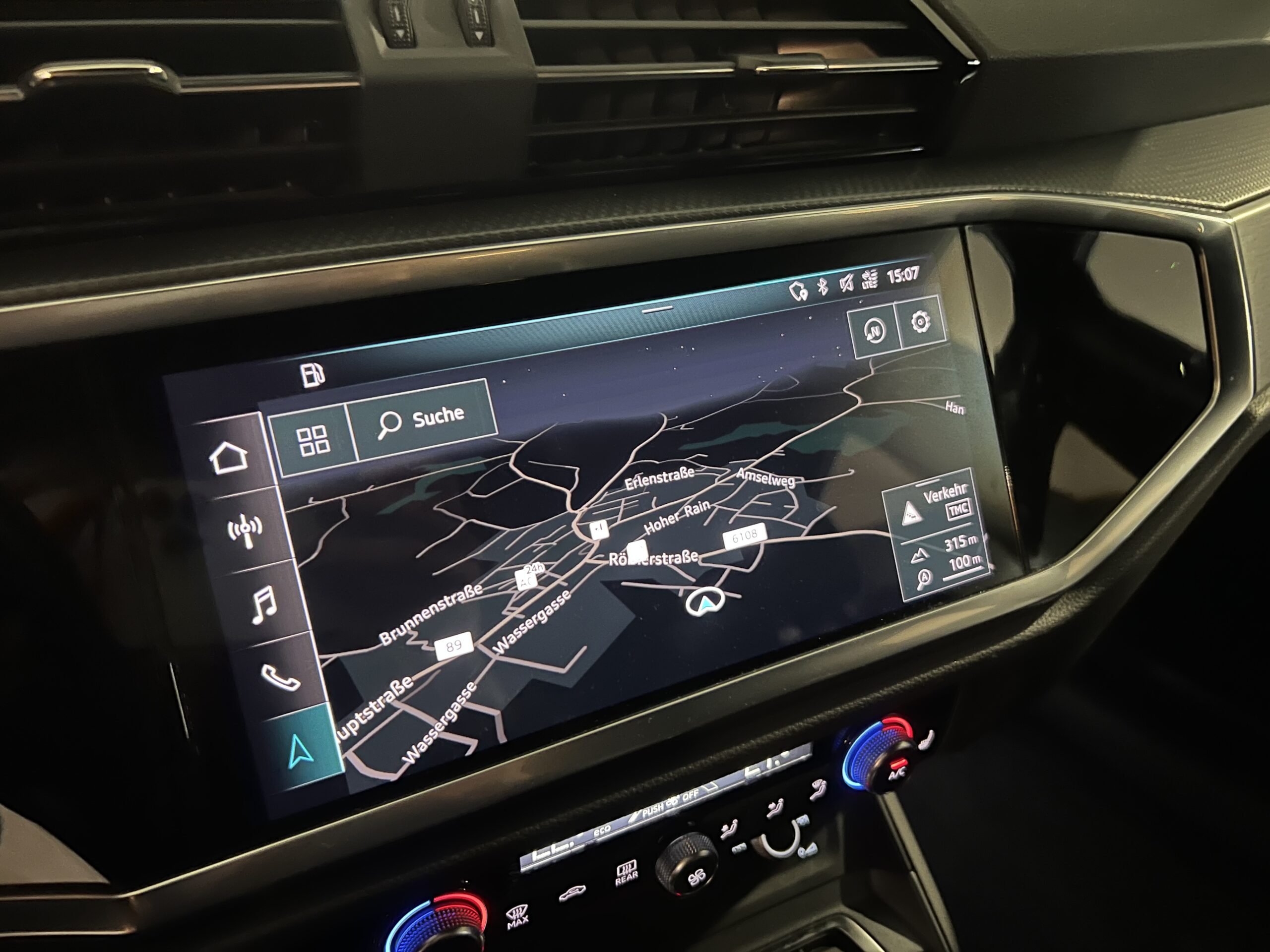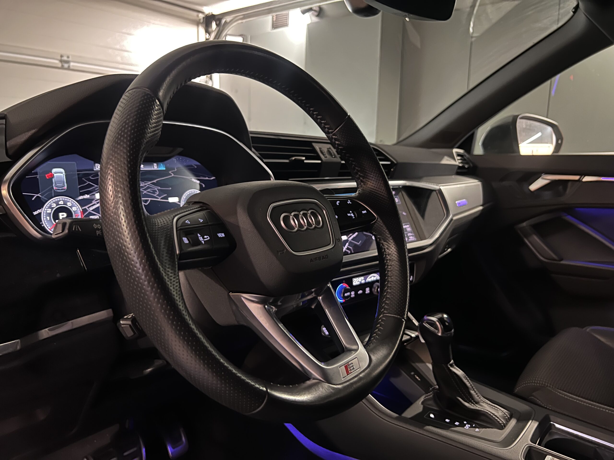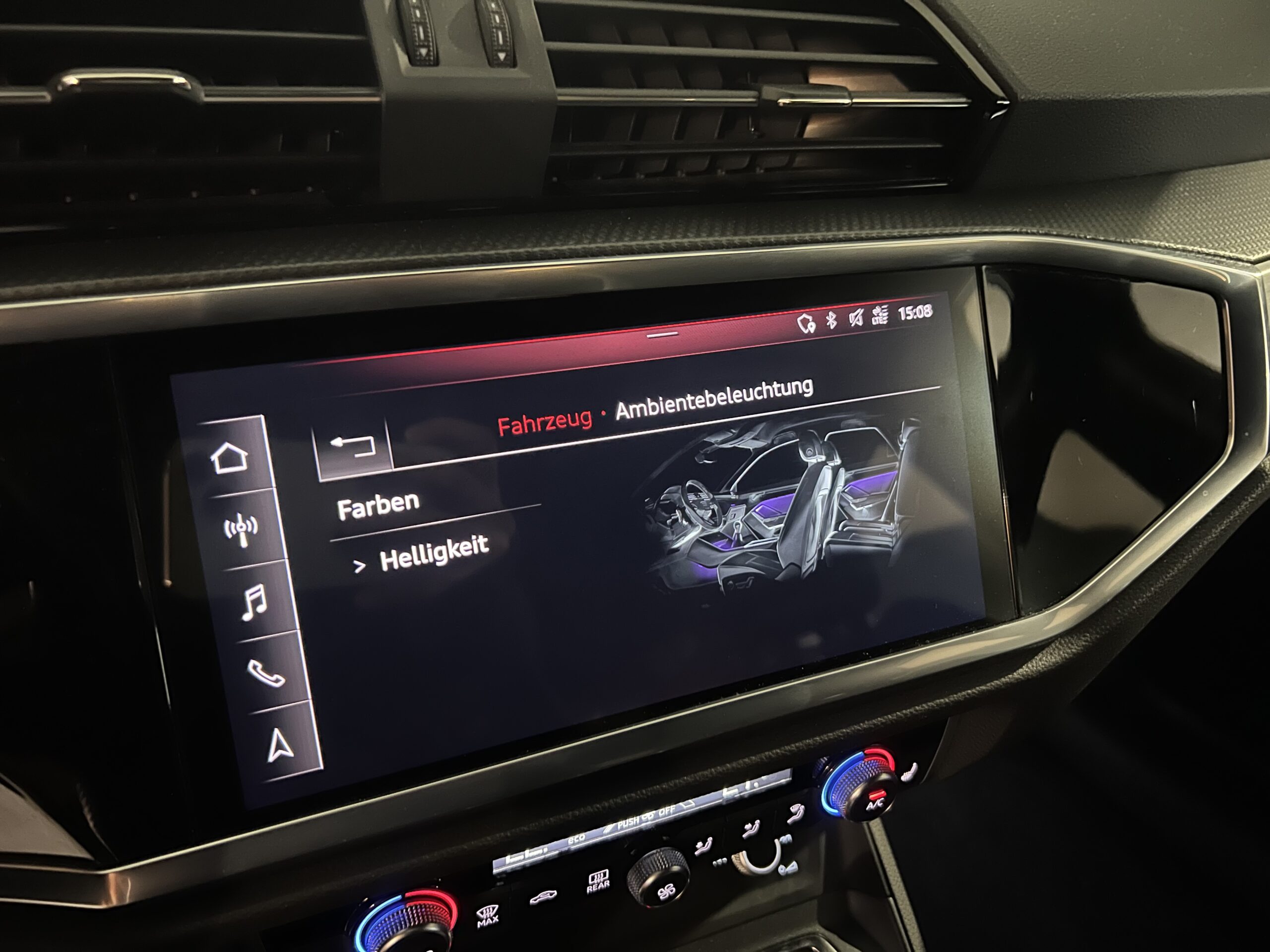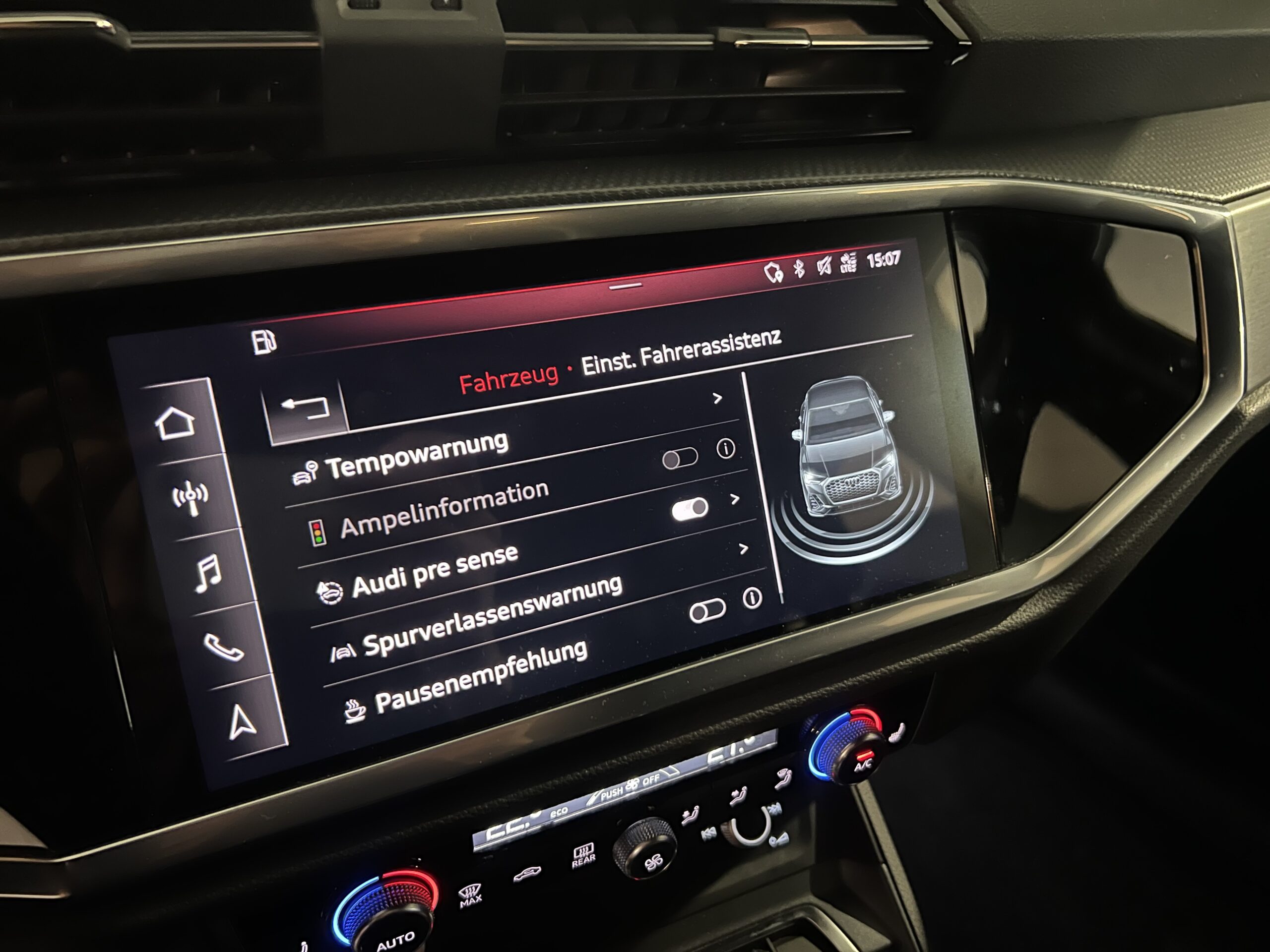Durch die wunderschöne Außenfarbe, S-Line innen und außen, den silbernen 20 Zoll Audi Sport Alufelgen und den abgedunkelten Heckscheiben ab Werk wird der Q3 zu einem echten Hingucker auf der Straße.